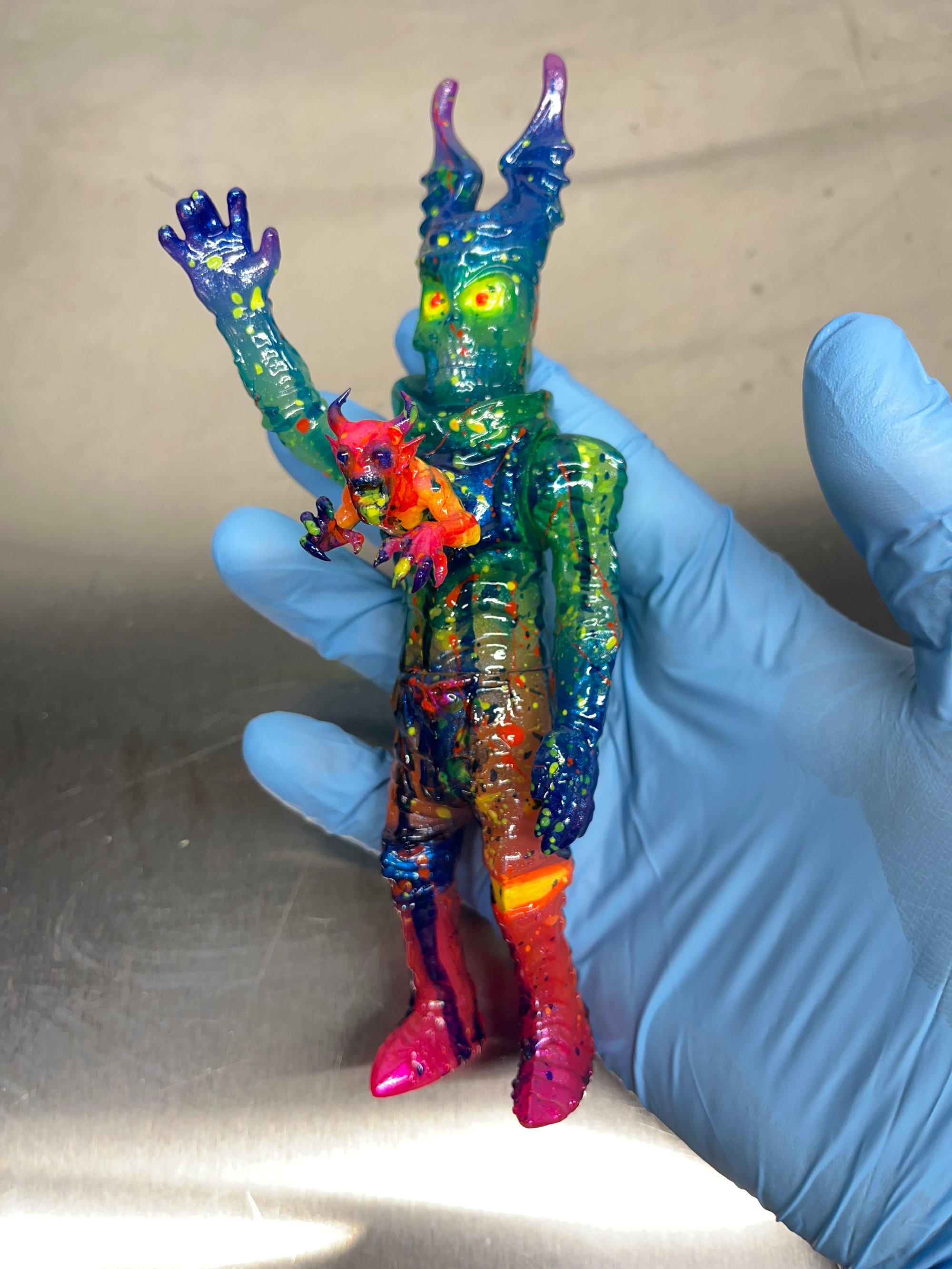 Custom vinyl Necrovenger figure from Barbarian Rage, 5 piece articulated at the neck arms and waist. Resin demon insert and paints by TopherToy.